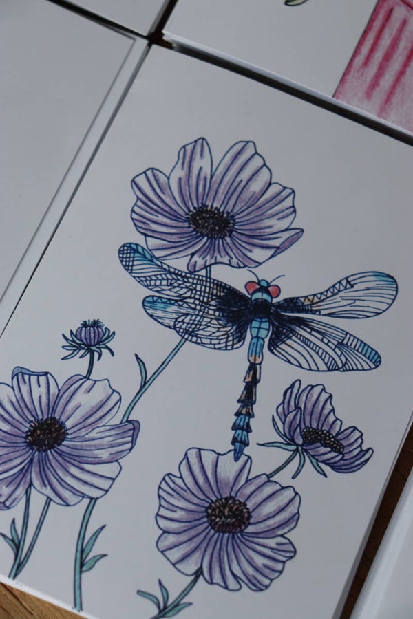 Prachtige kaart met libelle illustratie | de kaart is op a6 formaat | gedrukt op natuurkarton | inclusief envelop